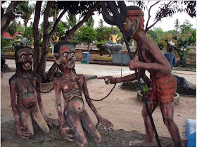 據曼谷40公里處,有一座最離奇的旅遊景點——班派戎寺廟公園maleangpo「地球上的地獄」,你會看到罪人被魔鬼折磨的酷刑場面及許多各種恐怖的怪物雕塑,彷彿是「人間地獄」的再現。其實,這些場面都是體現佛教的六道輪迴及惡有惡報,善有善報的報應理念,無非是通過這種直觀形象的形式勸人行善積德,廣結善緣。